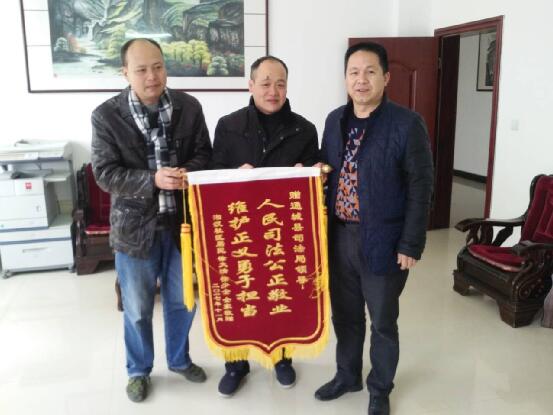 “非常感谢司法局的同志为我家解决了几十年的大难题。”11月22日上午,通城县隽水镇人徐某某兄弟两人来到该县司法局办公室,赠上一面“人民司法公正敬业 维护正义勇于担当”锦旗。