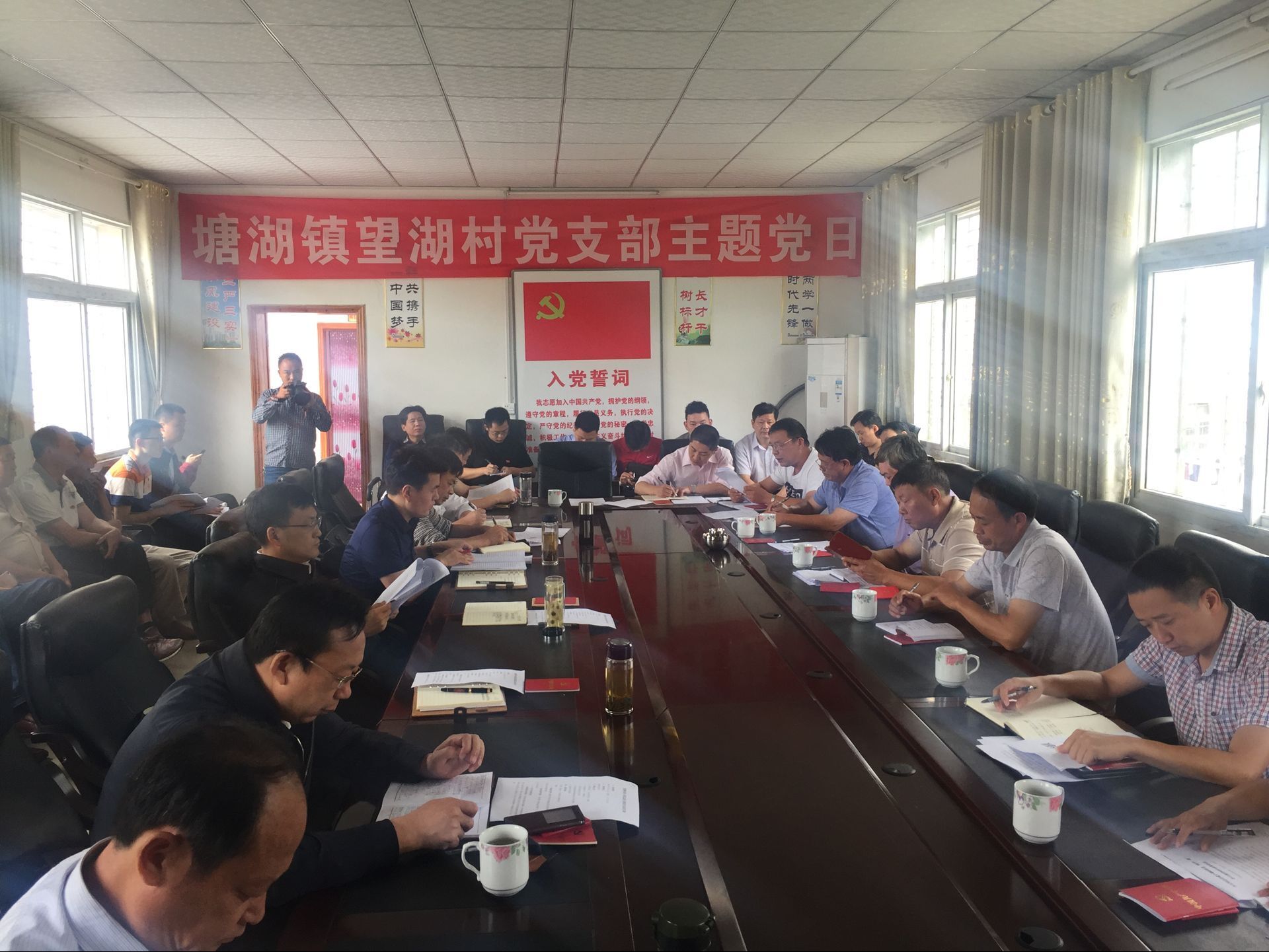 在望湖村委会议室,吴晖和大家围坐一堂,缴纳党费,齐诵党章,学习党规党情,听取村务公开情况。就如何开展“两学一做”,吴晖在与党员代表交流中提出,要对习近平总书记系列重要讲话进行系统学、深入学、跟进学,形成与工作岗位相匹配的政治眼力、理论功力、工作能力。要心中有信仰,不断补足精神之钙。要眼里有群众,加强群众血肉联系,把群众的“痛点”作为工作的切入点,解决群众实际困难。要手中有绝活,不断提升工作能力水平,丰富工作方式方法,将每项工作做透、做出实效。